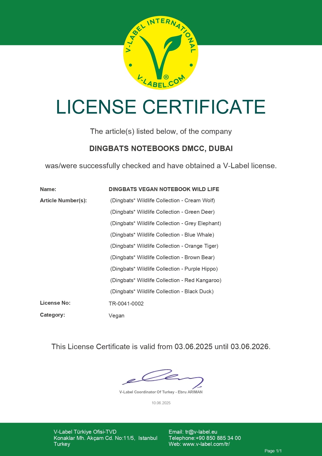 V-Lable Certificate